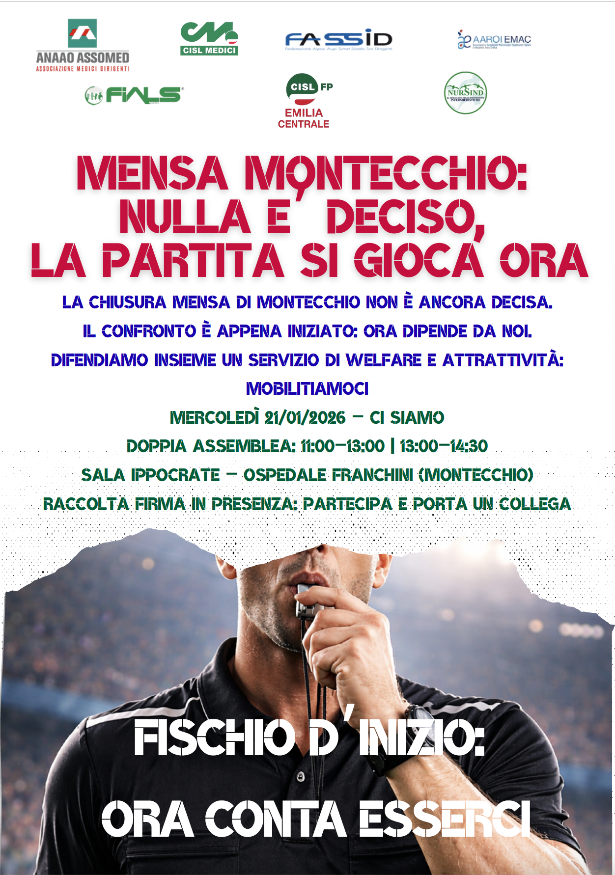 I lavoratori sono decisamente sul piede di guerra “e non ci fermeremo, chiederemo ai cittadini di Montecchio di sostenere con una petizione online la qualità dei servizi per il loro ospedale e per i suoi lavoratori, evitando che al Franchini tocchi la stessa sorte di Guastalla e Correggio, gli unici due ospedali aziendali senza una mensa per il personale e la cui cucina interna o è stata eliminata da anni (Correggio) o è stata rimossa recentemente (Guastalla, 2024). Il risultato è che quegli ospedali sono ancora meno attrattivi – attaccano i sindacati – per i professionisti, in particolare sanitari, che Ausl cerca disperatamente sul mercato del lavoro. Inoltre, volgendo l’attenzione ai pazienti, riteniamo che avere una mensa interna sia un aspetto qualificante dell’offerta sanitaria del Franchini che oggi è in grado di fornire un servizio molto apprezzato dai pazienti stessi. Un appello speciale lo rivolgiamo anche al Sindaco Fausto Torelli, persona perbene e soprattutto medico per una vita. Lui, più di altri, può capire l’importanza delle nostre richieste. Lo invitiamo a firmare la petizione”.